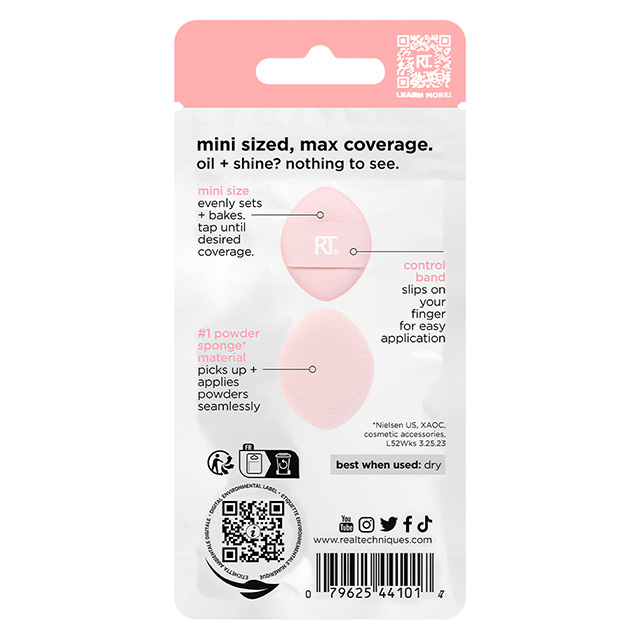 Mit dem Mini Miracle Powder Puff Trio erhältst du 3 kleine Puderquasten, die für gezieltes Auftragen und Fixieren entwickelt wurden. Sie werden auf deinem Finger mit dem Kontrollband an Ort und Stelle gehalten, um eine einfache und präzise Anwendung zu ermöglichen. Trage Puderprodukte unter den Augen, um die Nase herum oder überall dort auf, wo du ölig wirst. Die Quasten bestehen aus Samtfasern, die den Puder aufnehmen und auftragen und so einen weichen Effekt auf der Haut erzeugen. Diese Puderquasten eignen sich auch perfekt für unterwegs. Wir empfehlen, sie alle 30 Tage zu ersetzen.