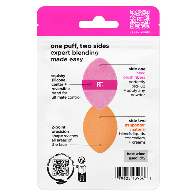 Der Real Techniques Miracle 2-in-1 Powder Puff ist doppelseitig und wurde die für Puder, Flüssigkeiten und Cremes entwickelt und wird am besten trocken verwendet. Die rosafarbene Seite besteht aus Plüschfasern, die genau die richtige Menge jedes Puderprodukts aufnehmen, um Deine Base zu fixieren oder Dein Make-up aufzufrischen. Die orangefarbene Seite besteht aus unserem #1 Miracle Complexion Sponge Material, mit dem sich flüssige oder cremige Produkte mühelos verblenden lassen. Der weiche Silikoneinsatz verleiht dem Powder Puff eine luxuriöse Sprungkraft für das besonders einfache Auftragen.