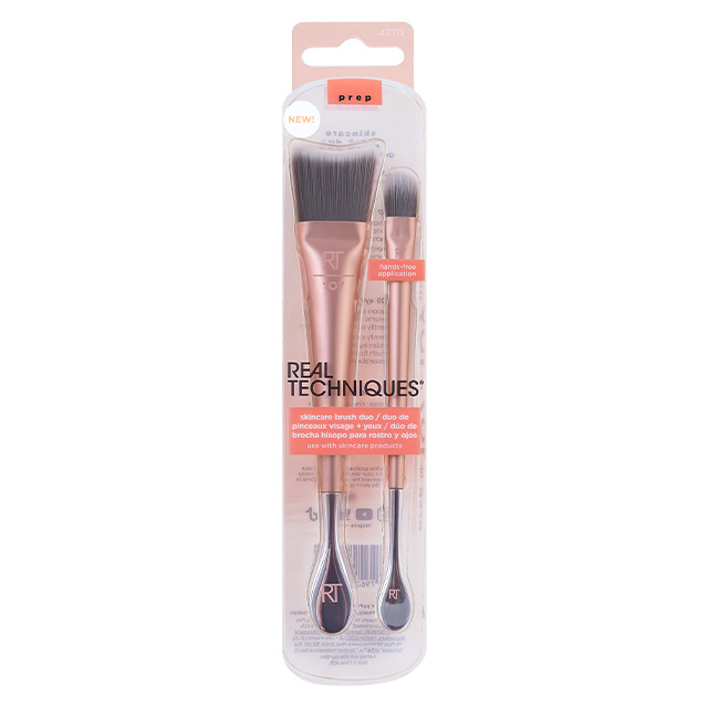 Mit dem Real Techniques Face + Eye Jar Brush Duo kannst Du Deine Lieblingsprodukte mit dem Löffel auftragen und mit dem Pinsel glätten – ohne deine Finger zu benutzen! Beide Pinsel haben zwei Enden mit unseren Real Techniques UltraPlush™-Synthetikborsten an einem Ende und einer Edelstahlschaufel am anderen. Mit dem RT 107 Face Brush lässt sich das Produkt gleichmäßig auf dem Gesicht verteilen, um die Haut vorzubereiten und mit Feuchtigkeit zu versorgen. Verwende den RT 109 Eye Brush, um das Produkt gleichmäßig unter der Augenpartie zu verteilen, um die Haut zu glätten und zu pflegen.